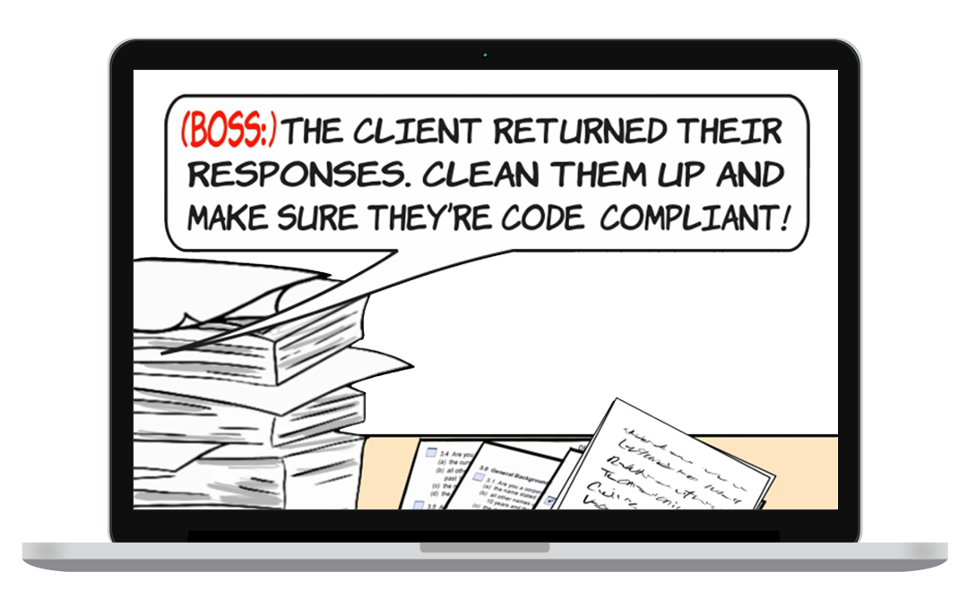 EasyRogs™ replaces old-fashioned paper with intelligent software that automatically generates completed forms, interactively guides clients through their responses, and enables one-click verifications. The result is complete, code-compliant responses, reduced costs, and protection from COVID-19.
