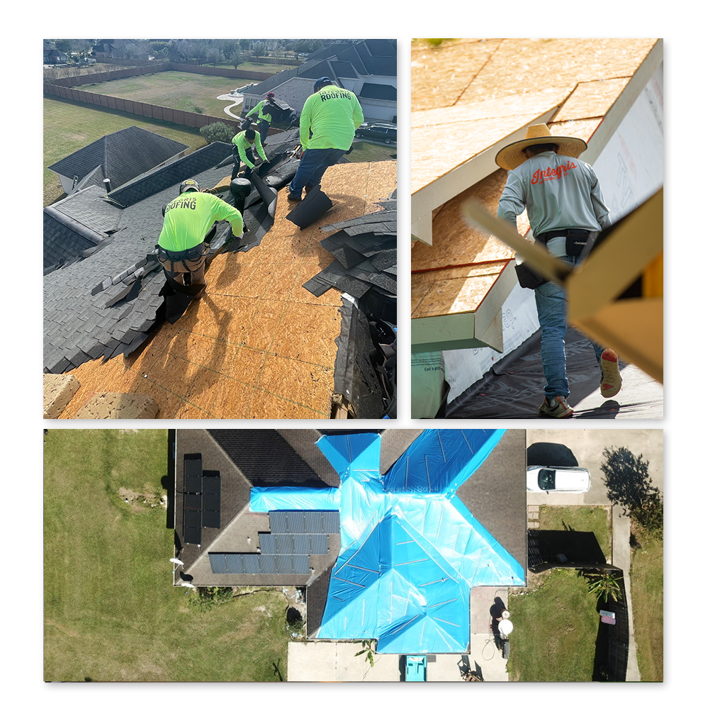 At Integris Roofing, we have been repairing roofs damaged by storms for a very long time. Our Houston storm damage roof repair experts start with a thorough inspection of your roof and make a list of all the damage. We then draft a repair plan, which is discussed with you (the homeowner) before proceeding.