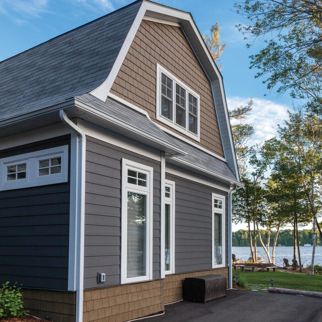 Shake aka shingle siding is a very popular siding style that is composed of individual shakes or shingles to give your home a warm, rustic look. This style of siding is mostly used on cottages or traditional style homes, or it is used as an accent to horizontal lap siding to give your home a beautifully textured appearance.