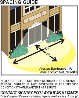 • Uniform elongated lighting pattern over required path of egress.